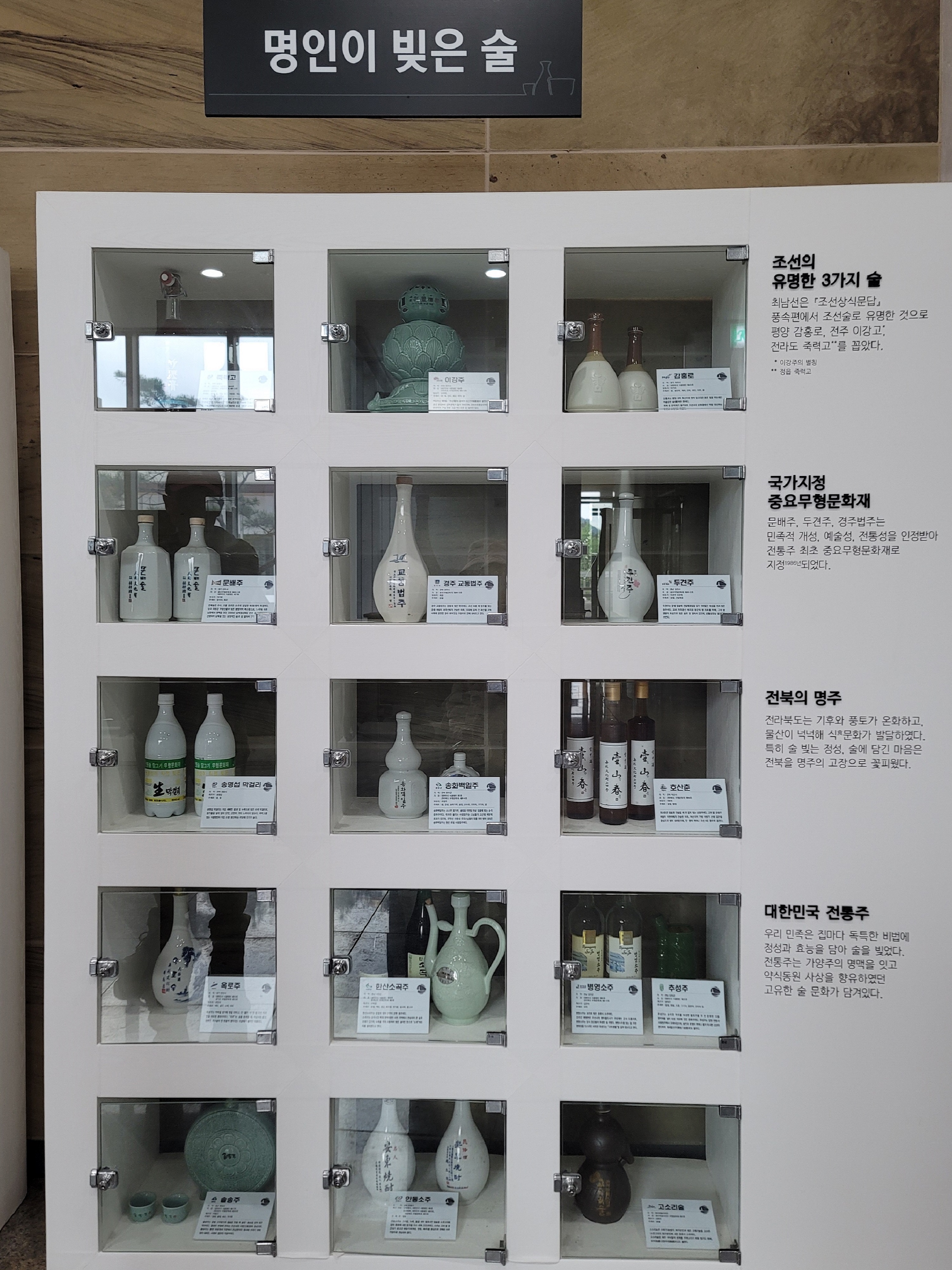 명인이 빚은 술들도 전시되어 있어요.