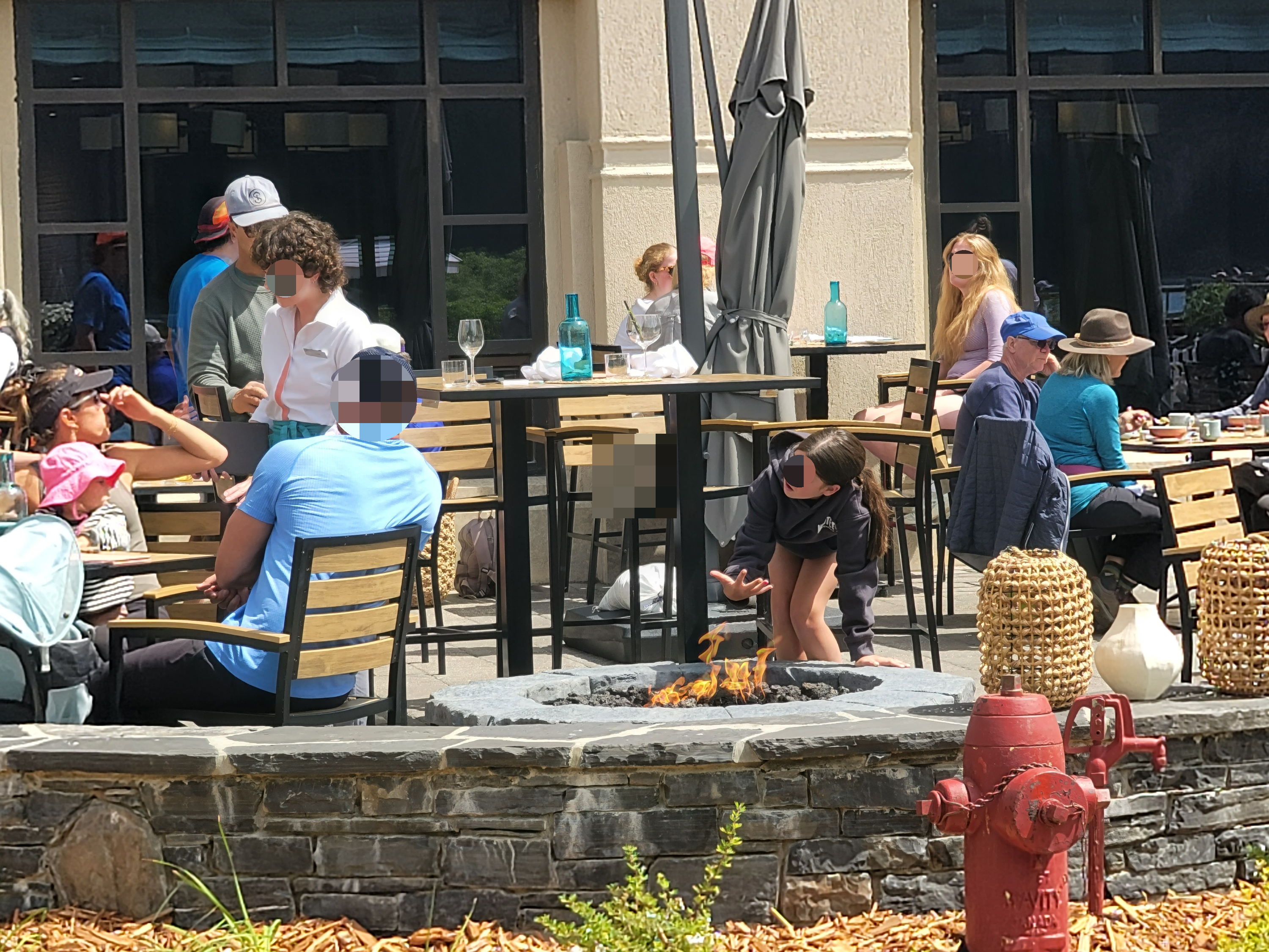 양해를 구하고 잠시 샤토 레이크 루이스 앞 정원에서 레이크 루이스를 바라보며...