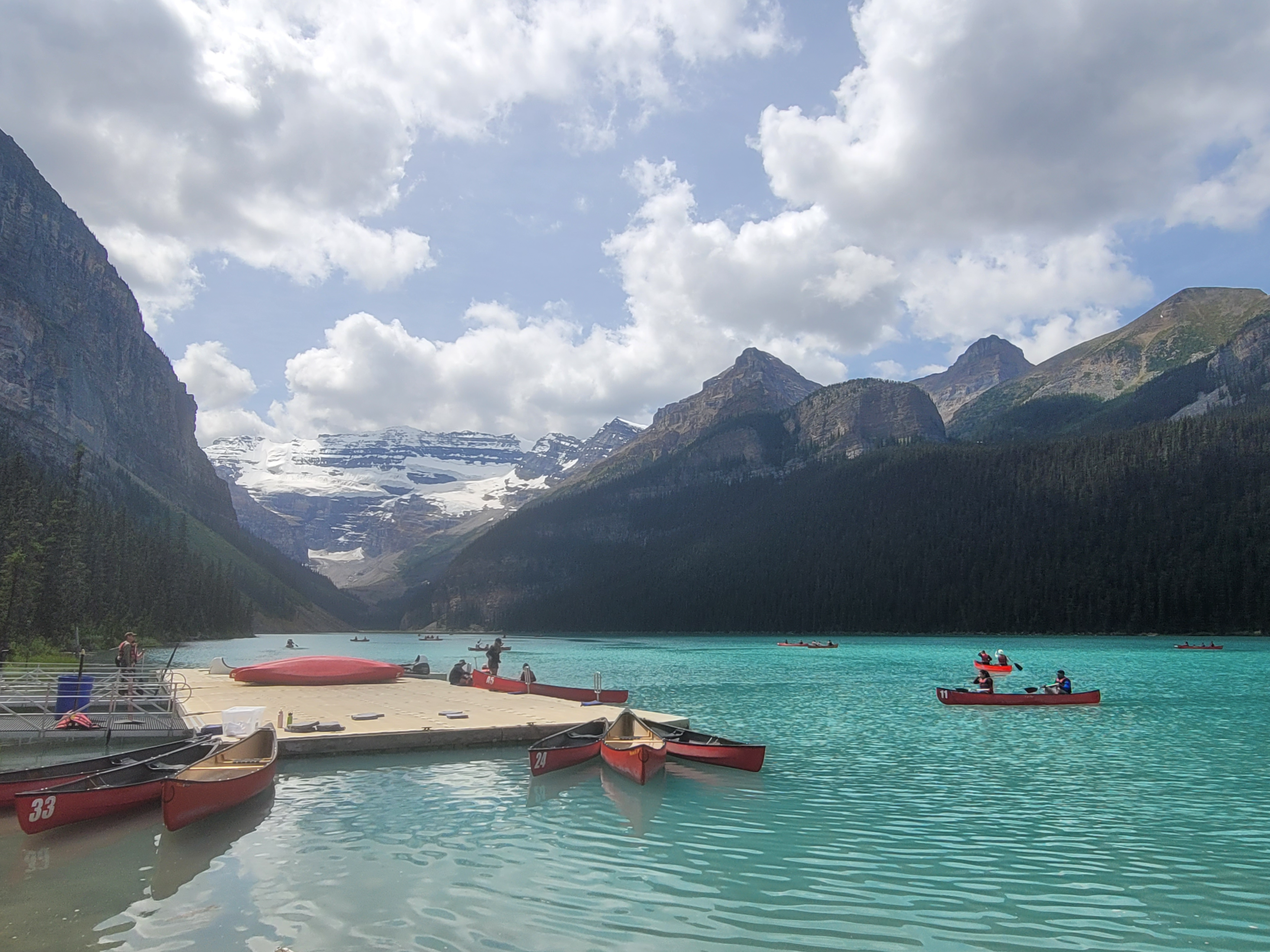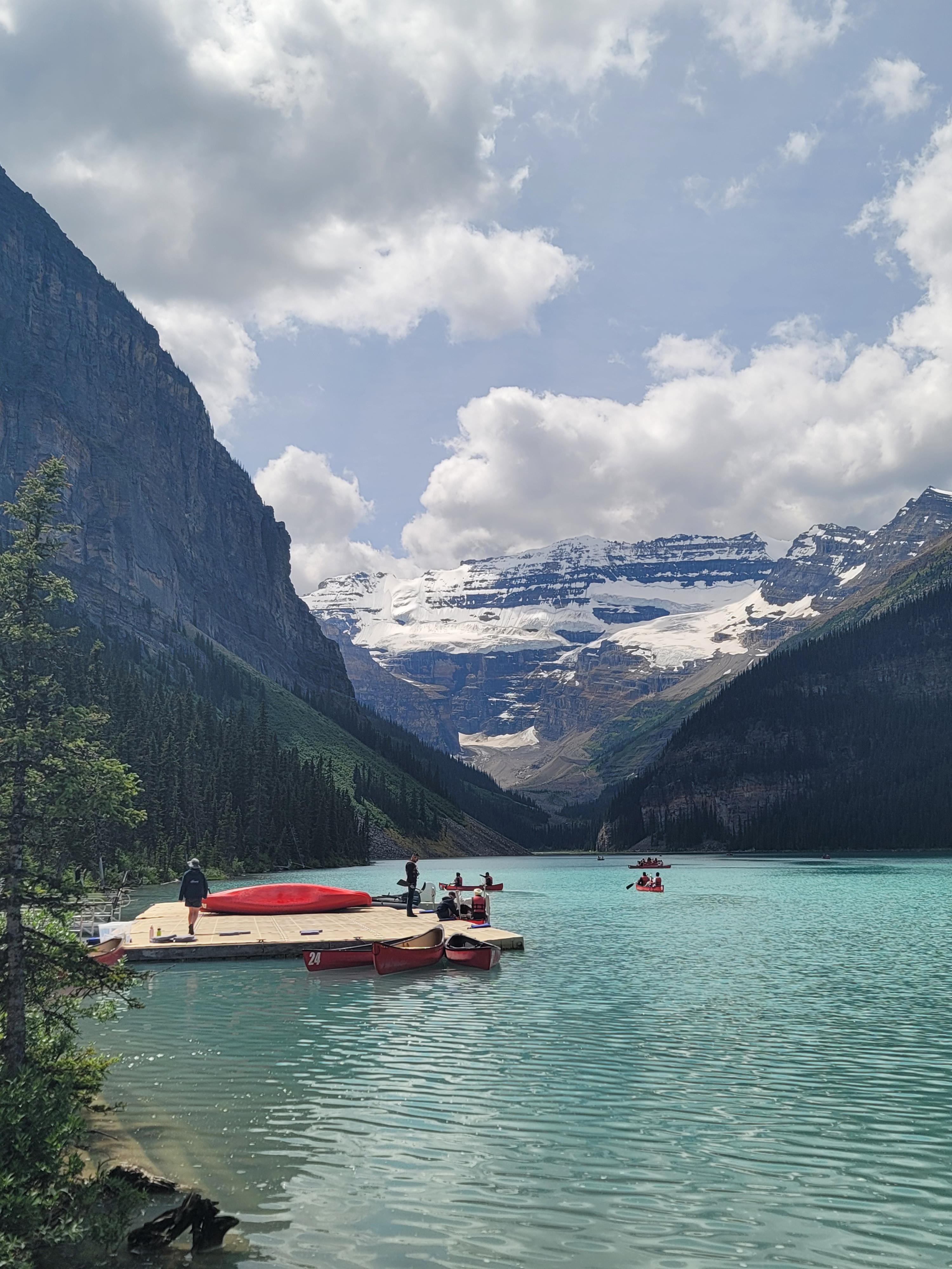 여름날의 레이크 루이스에는 카약을 타는 사람들이 참 많았다.